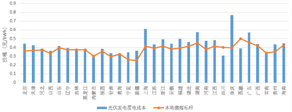 圖2 光伏發(fā)電度電成本與燃煤標(biāo)桿電價(jià)對(duì)比