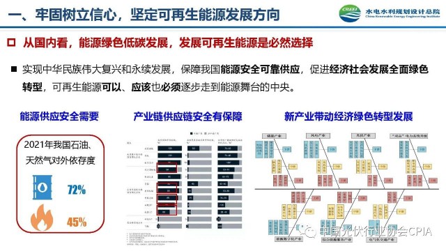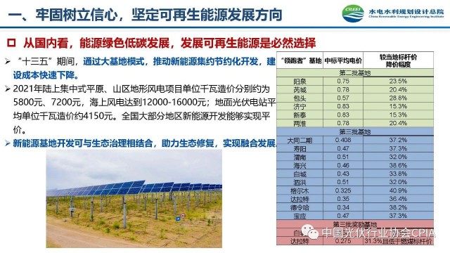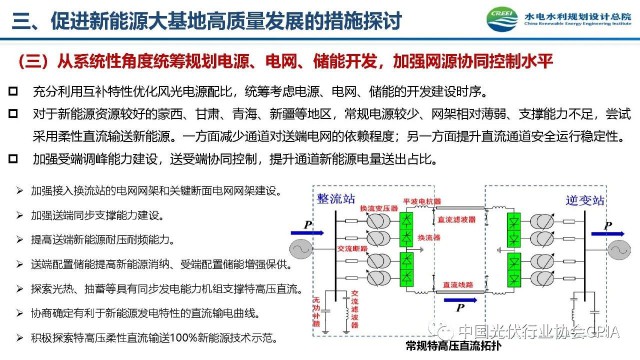 2022年12月1日,由中國光伏行業(yè)協(xié)會主辦的2022中國光伏行業(yè)年度大會暨(滁州)光伏高質量發(fā)展高峰論壇在安徽滁州成功召開。水電水利規(guī)劃設計總院新能源部副主任王躍峰作多措并舉促進新能源大基地高質量建設與發(fā)展的報告。王主任指出了新能源開發(fā)面臨的五點挑戰(zhàn),并提出了促進新能源大基地高質量發(fā)展的十條措施。