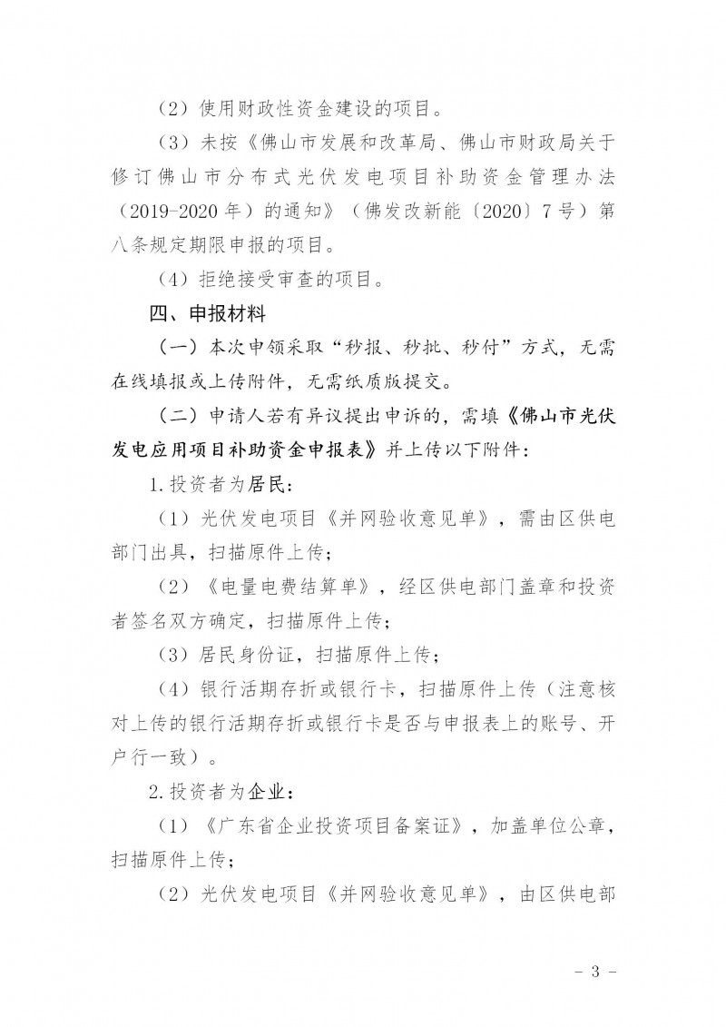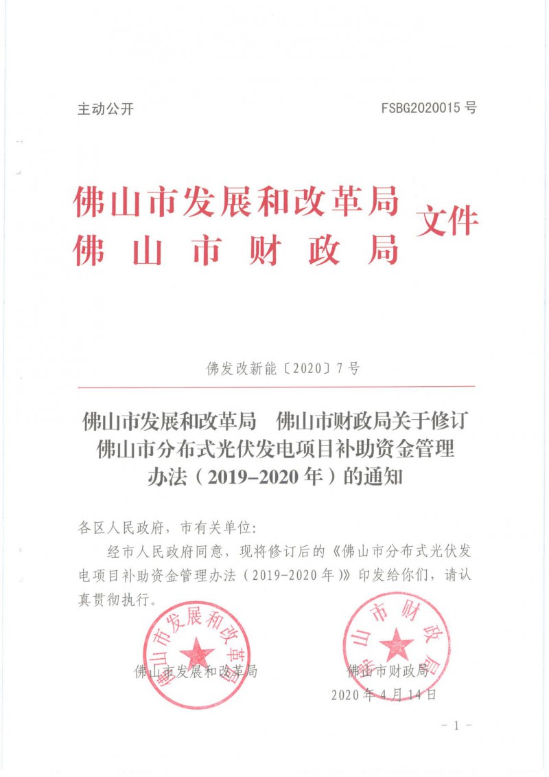 根據(jù)《佛山市人民政府辦公室關(guān)于對(duì)2016—2018年建成光伏發(fā)電應(yīng)用項(xiàng)目進(jìn)行獎(jiǎng)勵(lì)和補(bǔ)助的通知》(佛府辦〔2016〕57號(hào),見附件1)、《佛山市發(fā)展和改革局佛山市財(cái)政局關(guān)于修訂佛山市分布式光伏發(fā)電項(xiàng)目補(bǔ)助資金管理辦法(2019—2020年)的通知》(佛發(fā)改新能〔2020〕7號(hào),見附件2)的文件要求,現(xiàn)開展我區(qū)2020年度光伏補(bǔ)助資金申報(bào)工作,并將有關(guān)事項(xiàng)通知如下: