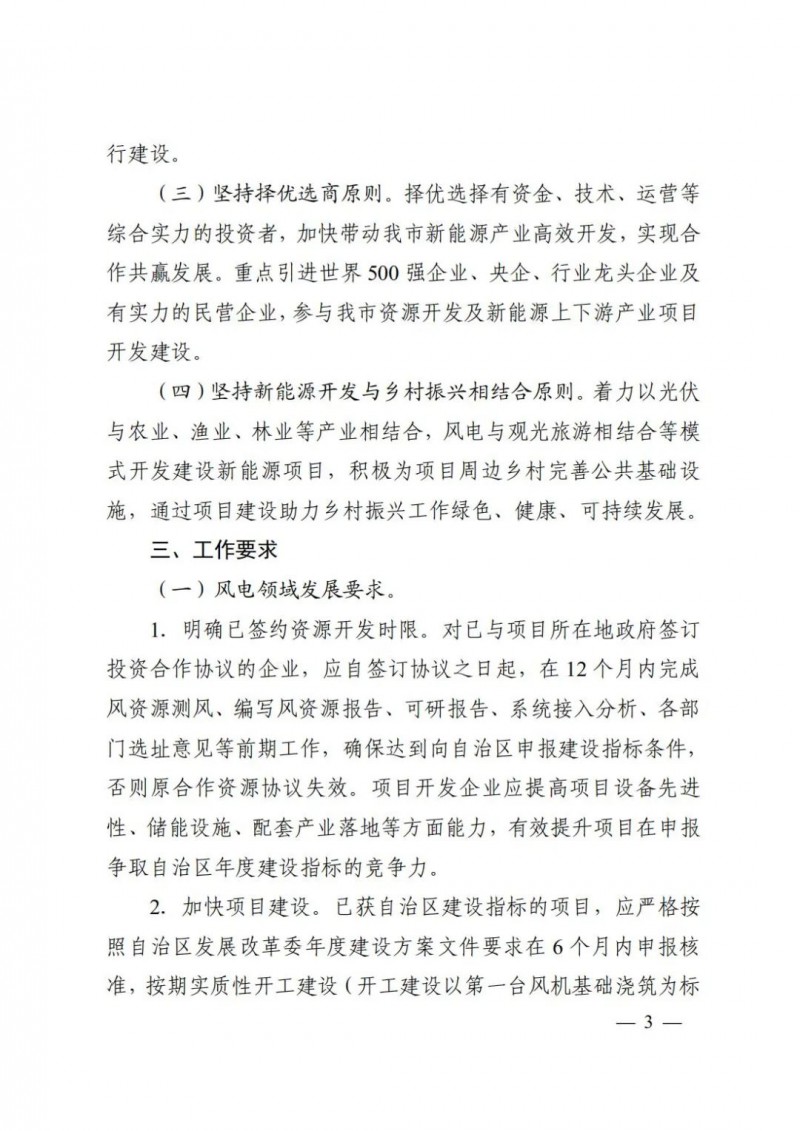對已獲自治區(qū)建設指標的項目,應嚴格按照自治區(qū)發(fā)展改革委年度建設方案文件要求按期實質性開工建設、完工和實現(xiàn)并網(wǎng)發(fā)電,否則取消項目建設權限。