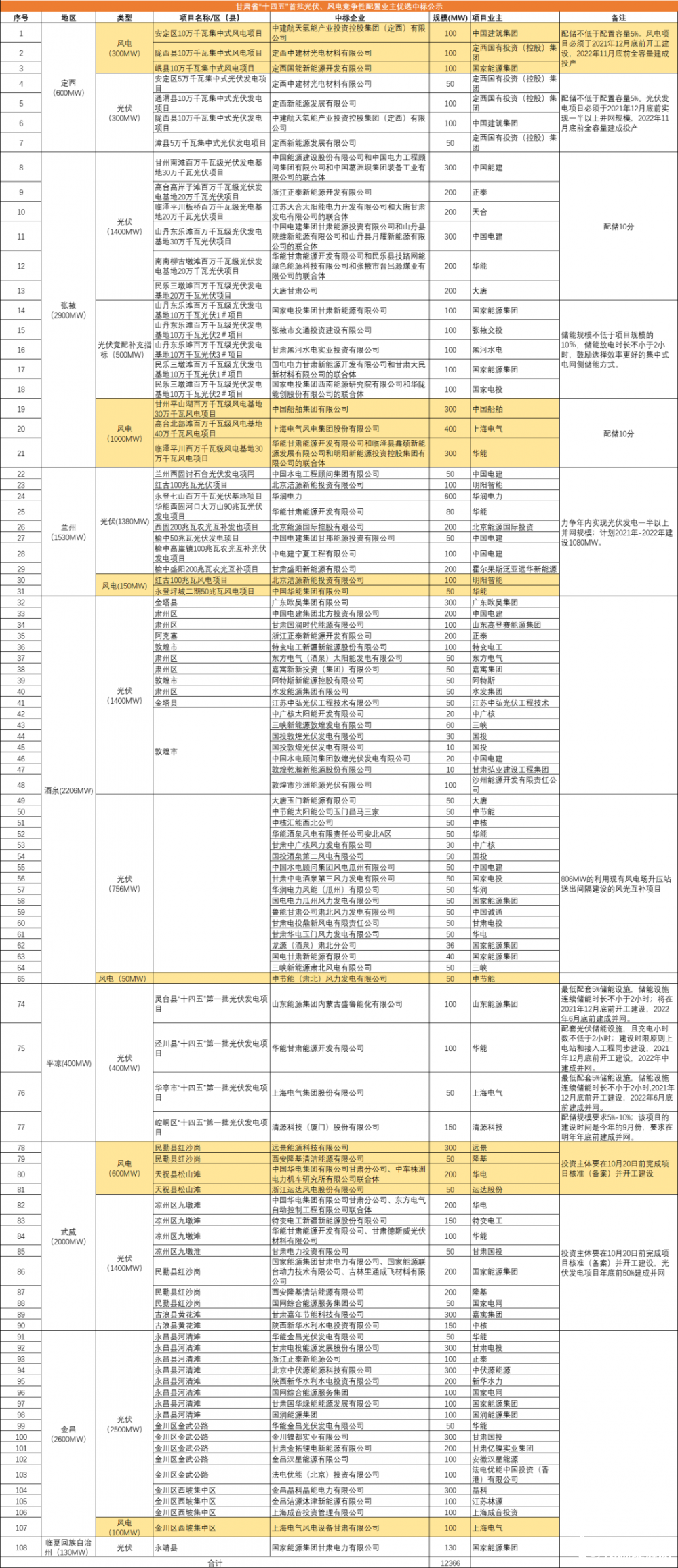 另外在甘肅省“十四五”首批風(fēng)光項目開發(fā)建設(shè)中,紅頭文件最早已經(jīng)明確了2021-2022年甘肅省安排新增風(fēng)電、光伏發(fā)電項目建設(shè)規(guī)模1200萬千瓦。