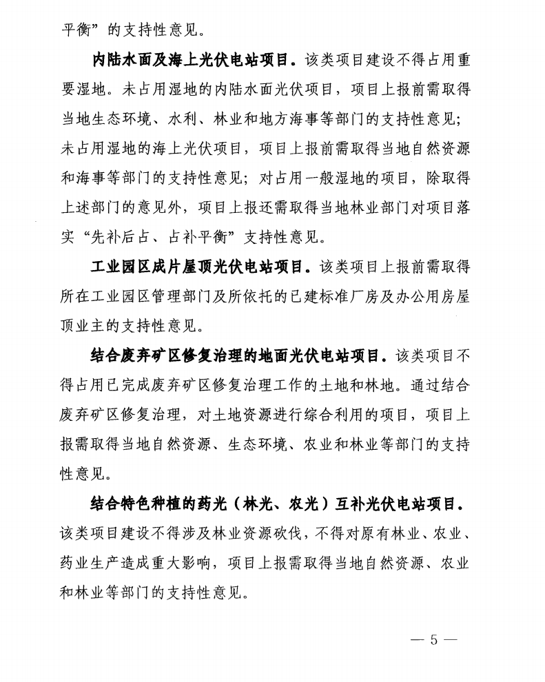 1)近海養(yǎng)殖漁光互補、2)內(nèi)陸水面及海上光伏、3)工業(yè)園區(qū)成片屋頂光伏、4)結合廢棄礦區(qū)修復治理的地面光伏、5)結合特色種植的藥光(林光、農(nóng)光)互補。