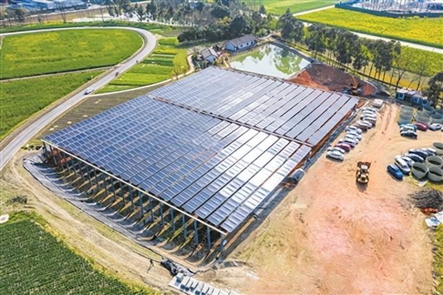 記者看到,在魚塘旁邊還有一座兩層樓的建筑正在進(jìn)行外立面裝修。據(jù)了解,這是“漁光一體”項目的配套設(shè)施,這棟綜合樓包含“鄉(xiāng)村振興+碳中和”科普教育展示基地、多功能會議室、頂層觀景平臺等,建成后將集科普展示、會務(wù)、觀景、研學(xué)等功能于一體。天府農(nóng)博園管委會相關(guān)負(fù)責(zé)人表示,項目建成運(yùn)營后,將成為開展碳中和與鄉(xiāng)村振興科普研學(xué)活動的基地,讓更多市民、游客近距離感受光伏發(fā)電與智慧養(yǎng)魚是怎樣結(jié)合在一起的。成都日報記者 李娟