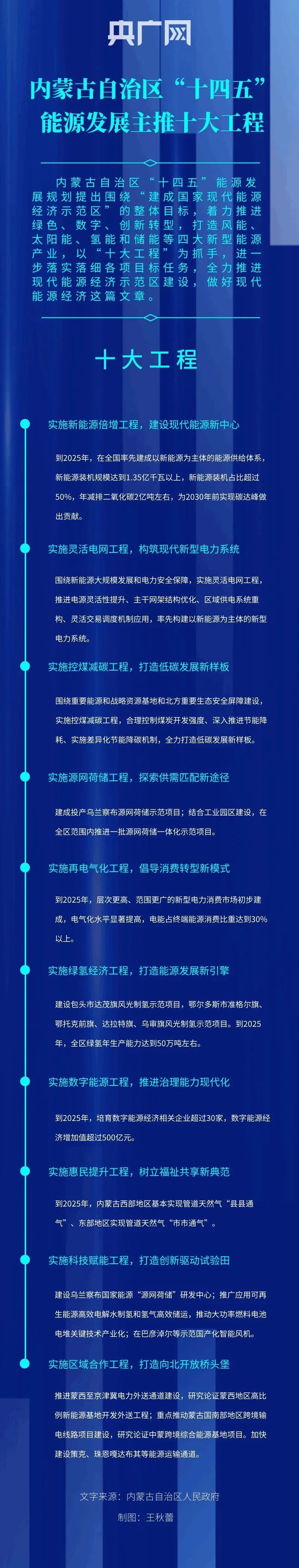 近日,內(nèi)蒙古自治區(qū)“十四五”能源發(fā)展規(guī)劃出臺,確定“十四五”時期能源發(fā)展總體藍(lán)圖和行動綱領(lǐng)。“十四五”時期,內(nèi)蒙古將緊緊圍繞做好現(xiàn)代能源經(jīng)濟(jì)這篇文章,以建設(shè)國家現(xiàn)代能源經(jīng)濟(jì)示范區(qū)為總體目標(biāo),推進(jìn)能源和戰(zhàn)略資源基地優(yōu)化升級。