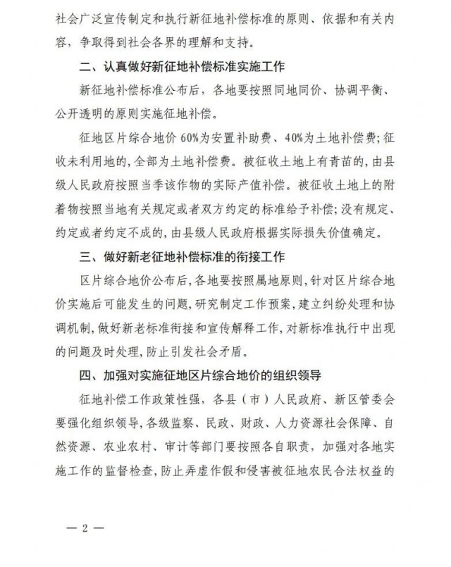 此外,根據(jù)黔西南州征地區(qū)片綜合地價(jià)補(bǔ)償更新標(biāo)準(zhǔn),各地要按照同地同價(jià)、協(xié)調(diào)平衡、 公開透明的原則實(shí)施征地補(bǔ)償。征地區(qū)片綜合地價(jià)60%為安置補(bǔ)助費(fèi)、40%為土地補(bǔ)償費(fèi);征 收未利用地的,全部為土地補(bǔ)償費(fèi)。被征收土地上有青苗的,由縣級(jí)人民政府按照當(dāng)季該作物的實(shí)際產(chǎn)值補(bǔ)償。被征收土地上的附著物按照當(dāng)?shù)赜嘘P(guān)規(guī)定或者雙方約定的標(biāo)準(zhǔn)給予補(bǔ)償;沒有規(guī)定、 約定或者約定不成的,由縣級(jí)人民政府根據(jù)實(shí)際損失價(jià)值確定。