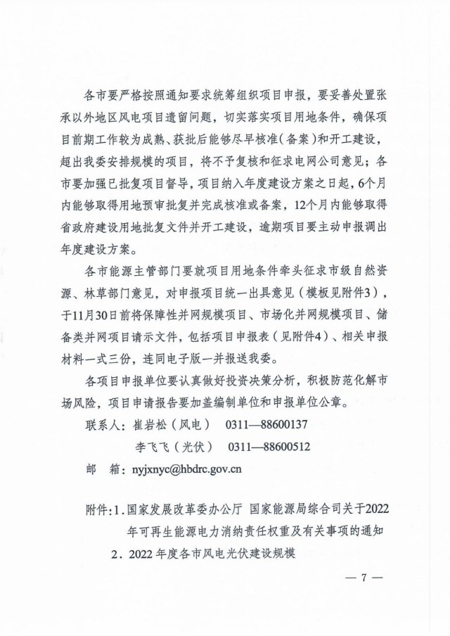 11月4日,河北省發(fā)展和改革委員會(huì)下發(fā)《關(guān)于做好2022年風(fēng)電、光伏發(fā)電項(xiàng)目申報(bào)工作的通知》,正式啟動(dòng)2022年風(fēng)電、光伏發(fā)電項(xiàng)目申報(bào)工作。根據(jù)文件,