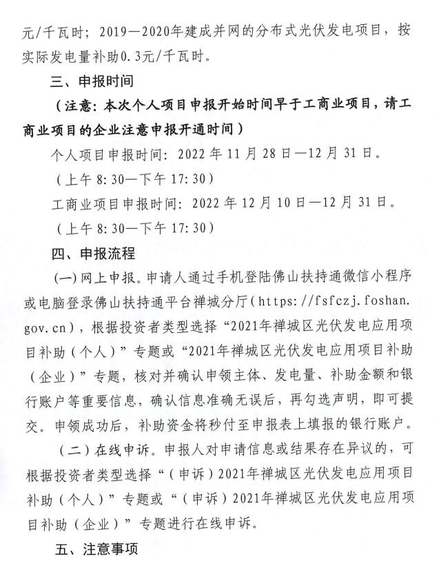 11月28日,佛山市禪城區(qū)發(fā)展和改革局印發(fā)《關(guān)于開展2021年度禪城區(qū)光伏發(fā)電應用項日補助資金申報工作的通知》。《通知》明確補助范圍:年在禪城區(qū)利用各類型建筑物和構(gòu)筑物建成且符合國家、省、市光伏項目管理辦法要求的分布式光伏發(fā)電項目的投資者。