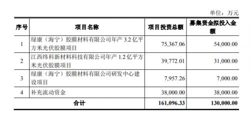 項(xiàng)目的實(shí)施主體為江西緯科新材料科技有限公司,實(shí)施地點(diǎn)為江西省上饒市玉山軸承產(chǎn)業(yè)園。項(xiàng)目總投資為39,772.01萬(wàn)元,擬使用募集資金投入31,000.00萬(wàn)元。本項(xiàng)目建設(shè)期為12個(gè)月,項(xiàng)目建設(shè)完成后將新增3,000萬(wàn)平方米POE光伏膠膜、6,000萬(wàn)平方米EVA光伏膠膜和3,000萬(wàn)平方米EPE光伏膠膜產(chǎn)能,有助于公司進(jìn)一步提高光伏膠膜的生產(chǎn)能力和市場(chǎng)占有率,加快業(yè)務(wù)轉(zhuǎn)型步伐,提升公司市場(chǎng)競(jìng)爭(zhēng)力。
