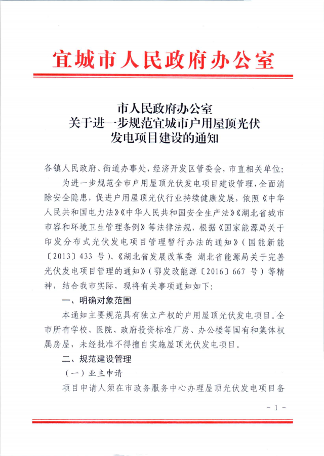 湖北宜城:公共屋頂光伏不得擅自開發(fā),戶用并網(wǎng)需8部門簽字