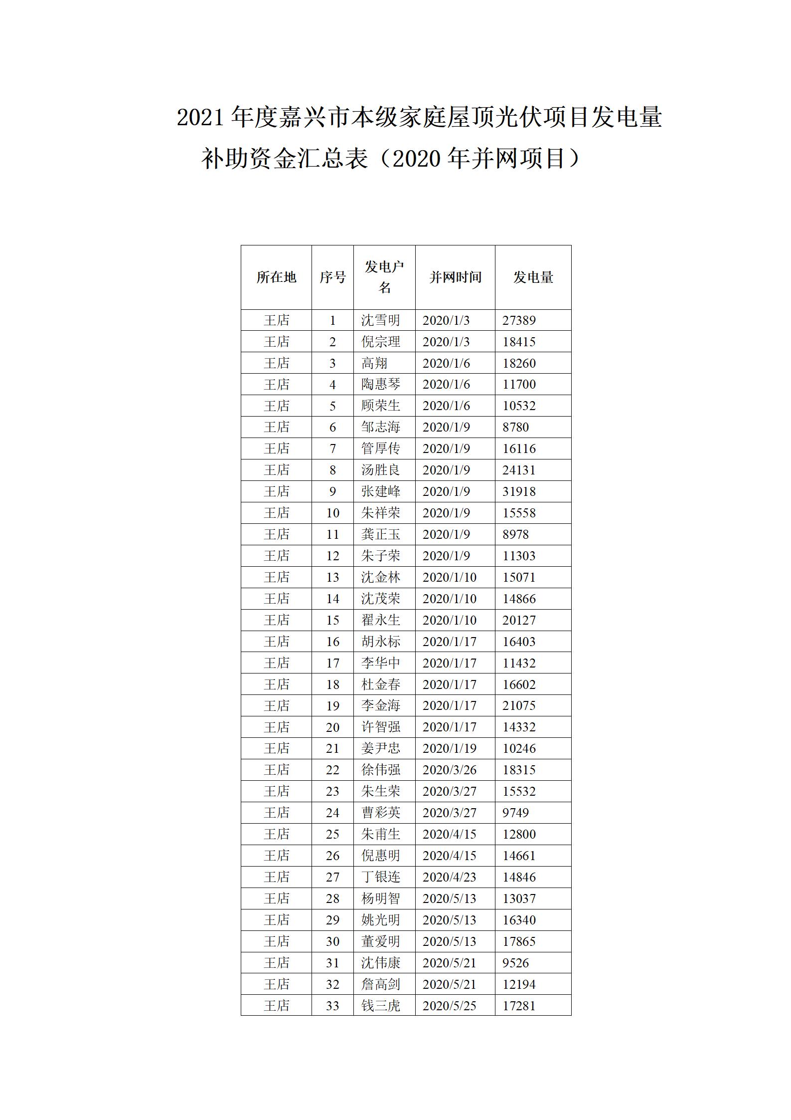 附件:2021年度嘉興市本級家庭屋頂光伏發(fā)電量(2020年并網(wǎng))補助資金公示
