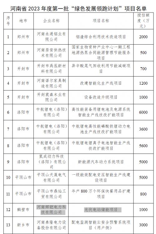 8月4日,河南省工業(yè)和信息化廳公布了2023年度第一批22個(gè)“綠色發(fā)展領(lǐng)跑計(jì)劃”項(xiàng)目名單,包括光伏電站儲(chǔ)能項(xiàng)目等,共涉及20家企業(yè),總授信額度12.73億元。