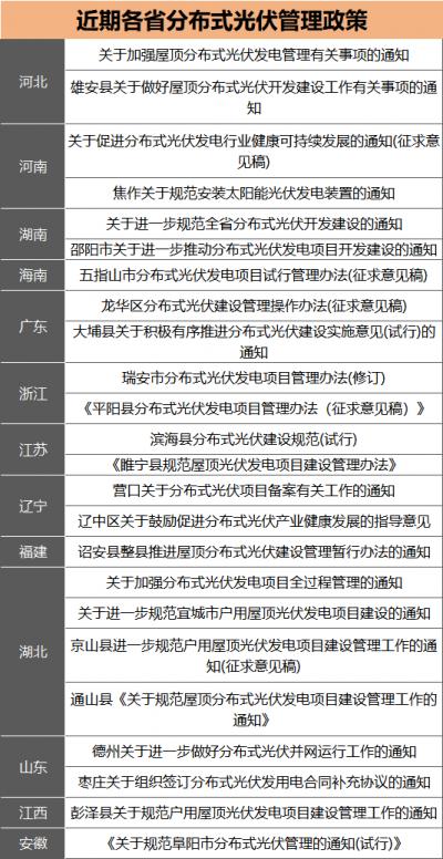 對此,今年以來多省出臺相關(guān)政策,就分布式光伏,主要是戶用光伏的備案、并網(wǎng)、接入管理等予以規(guī)范。