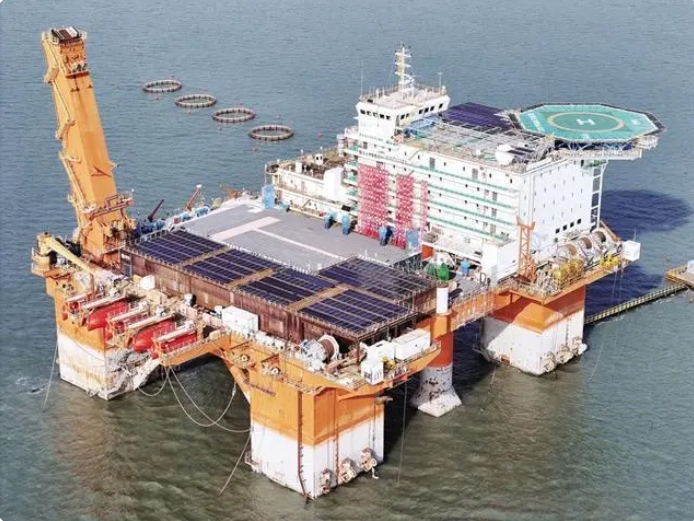 實證基地位于煙臺高新區(qū)四十里灣海域,由一座半潛式海上生活平臺改造而成,可克服風(fēng)、浪、流的循環(huán)載荷和高鹽霧等復(fù)雜海上工況,對水位、結(jié)構(gòu)受力、光照強(qiáng)度、發(fā)電量等數(shù)十項數(shù)據(jù)和光伏平臺項目的發(fā)電效率、新材料防腐性、抗風(fēng)浪能力等關(guān)鍵因素進(jìn)行綜合論證。