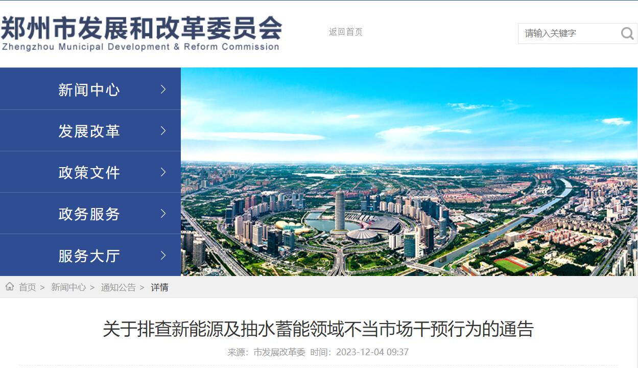 12月4日,河南鄭州發(fā)改委發(fā)布關(guān)于排查新能源及抽水蓄能領(lǐng)域不當市場干預(yù)行為的通告。一是強制要求配套產(chǎn)業(yè)。今年以來新能源及抽水蓄能領(lǐng)域,區(qū)縣(市)政府或相關(guān)部門,是否在相關(guān)文件中明確或者變相要求項目必須配套產(chǎn)業(yè)或者引入產(chǎn)業(yè);雖未明文規(guī)定,是否口頭強制要求配套產(chǎn)業(yè),或?qū)τ跊]有允諾配套產(chǎn)業(yè)的項目和投資主體給予阻礙或明顯歧視政策。