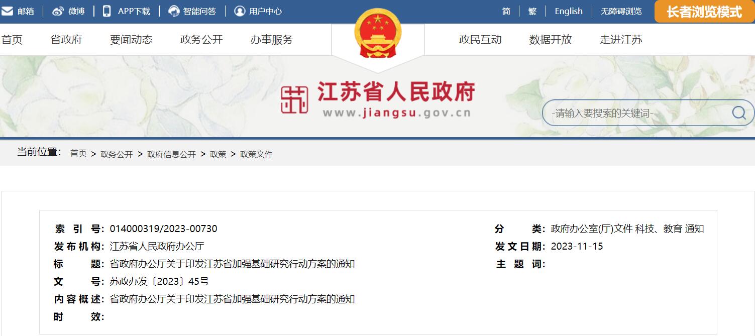 江蘇省加強基礎(chǔ)研究行動方案的通知