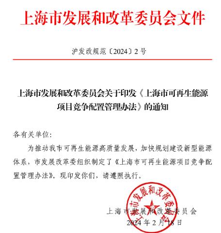 上海市可再生能源項(xiàng)目競爭配置管理辦法