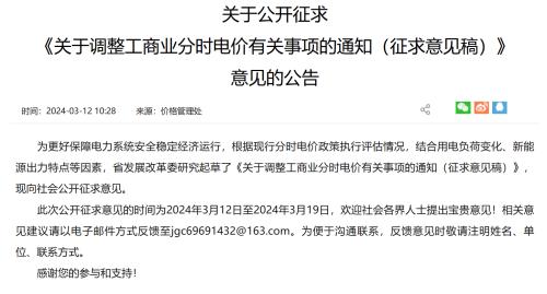 關(guān)于調(diào)整工商業(yè)分時電價有關(guān)事項的通知(征求意見稿)