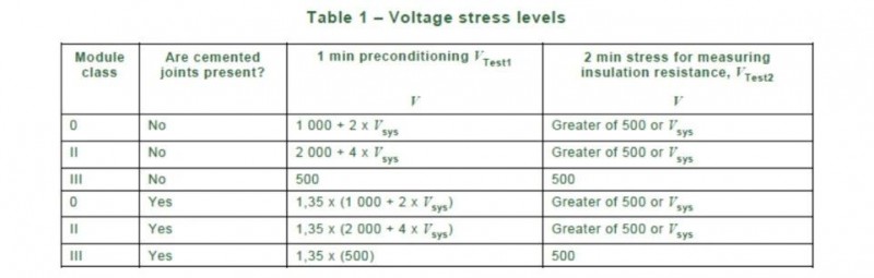 2. 絕緣測試 (MQT 03)依據(jù)組件的防護(hù)等級區(qū)分絕緣測試試加電壓等級,參考以下表格: