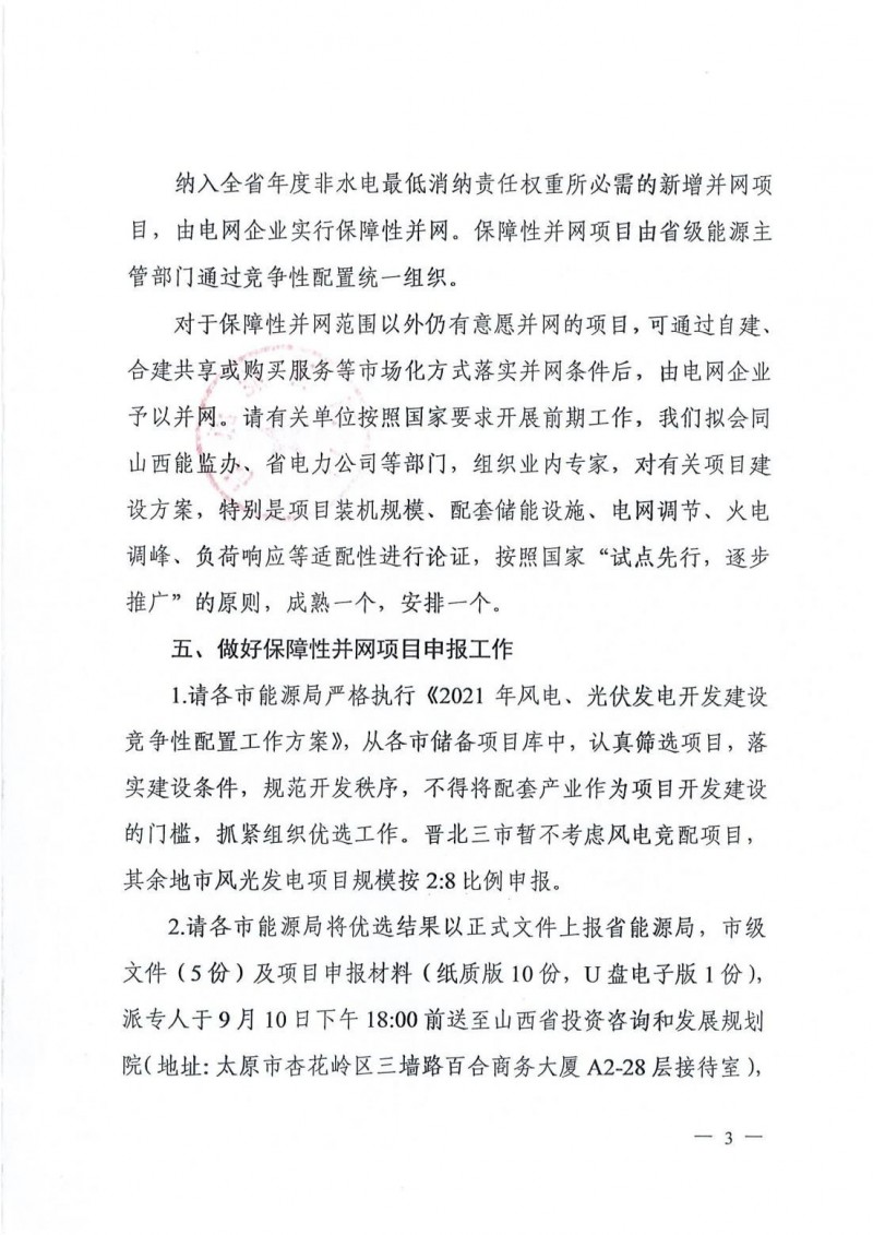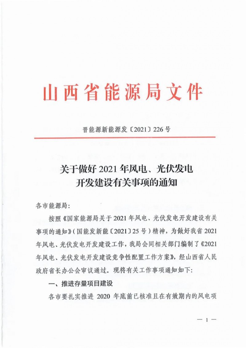 8月26日,山西省能源局印發(fā)《關(guān)于做好2021年風(fēng)電、光伏發(fā)電開發(fā)建設(shè)有關(guān)事項的通知》。通知中對山西省的2021年的光伏、風(fēng)電工作做了規(guī)劃。