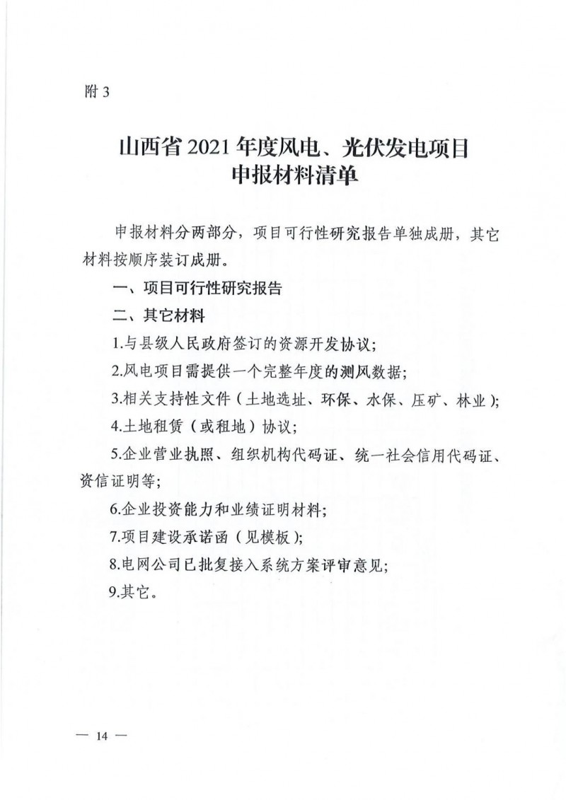 申報風(fēng)電項目應(yīng)于2022年12月底前并網(wǎng);光伏發(fā)電項目應(yīng)于2022年6月底前并網(wǎng)。申報材料于9月10日下午18:00前送至山西省投資咨詢和發(fā)展規(guī)劃院。