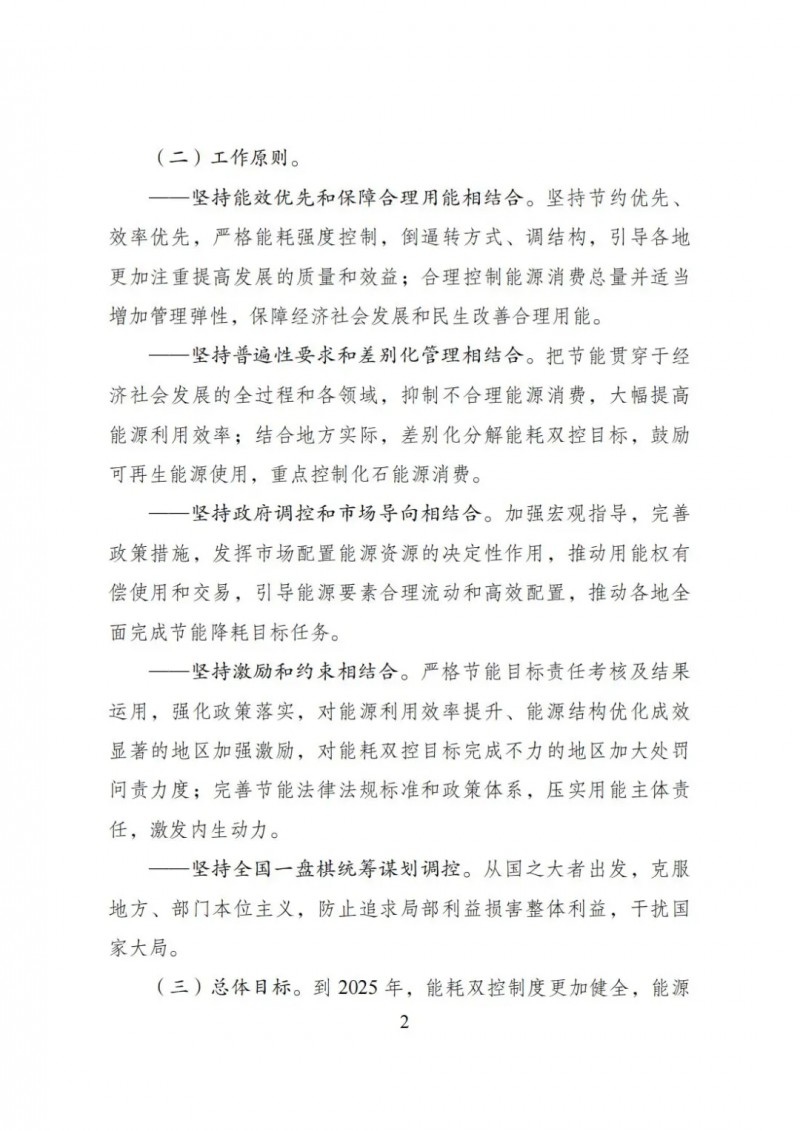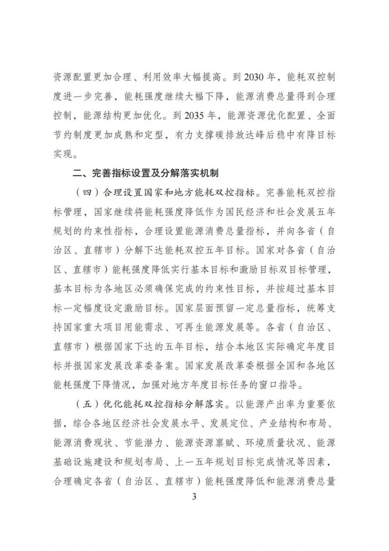 到2025年,能耗雙控制度更加健全,能源資源配置更加合理、利用效率大幅提高。到2030年,能耗雙控制度進一步完善,能耗強度繼續(xù)大幅下降,能源消費總量得到合理控制,能源結構更加優(yōu)化。到2035年,能源資源優(yōu)化配置、全面節(jié)約制度更加成熟和定型,有力支撐碳排放達峰后穩(wěn)中有降目標實現(xiàn)。