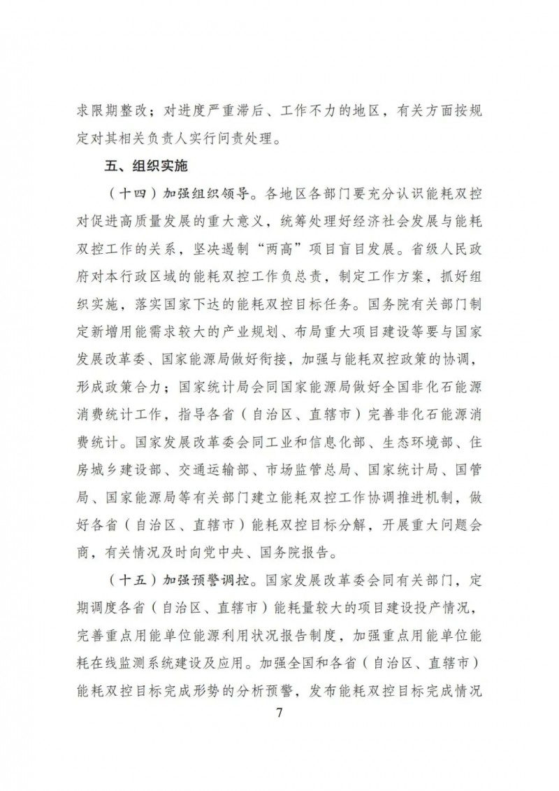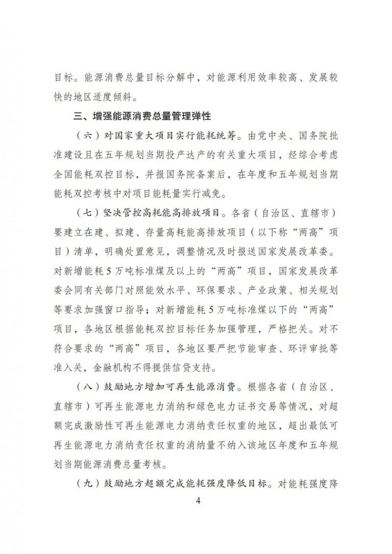 對新增能耗5萬噸標準煤及以上的“兩高”項目,國家發(fā)展改革委會同有關部門對照能效水平、環(huán)保要求、產(chǎn)業(yè)政策、相關規(guī)劃等要求加強窗口指導;對新增能耗5萬噸標準煤以下的“兩高”項目,各地區(qū)根據(jù)能耗雙控目標任務加強管理,嚴格把關。對不符合要求的“兩高”項目,各地區(qū)要嚴把節(jié)能審查、環(huán)評審批等準入關,金融機構不得提供信貸支持。
