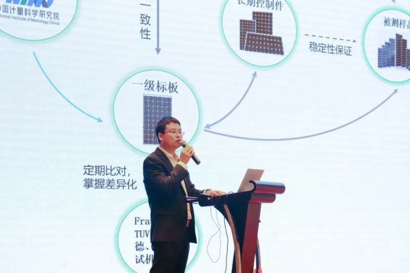 中國計量院光學所室主任助理蔡川,針對光伏行業(yè)常見的功率測試,分享了《太陽模擬器特性對光伏組件光電性能測試》的報告,提出了光伏組件光電性能測試的重要性,論述了光伏量值傳遞溯源體系,最后針對太陽模擬器特性對光伏組件光電性能測試影響的因素進行了分析。