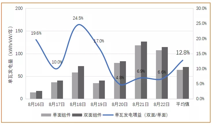 如前文分析,根據(jù)首年仿真結(jié)果,雙面組件比單面組件多發(fā)電0.7%左右,疊加衰減因素,年均多發(fā)電2%。