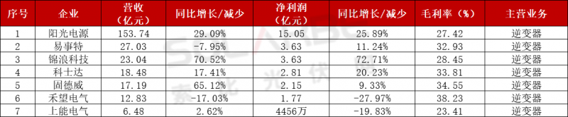 逆變器企業(yè)來看,7家逆變器企業(yè)Q1~Q3均實(shí)現(xiàn)盈利,2家企業(yè)凈利潤同比去年同期下滑,其中禾望電氣毛利率達(dá)38.23%、固德威34.55%、科士達(dá)33.81%。