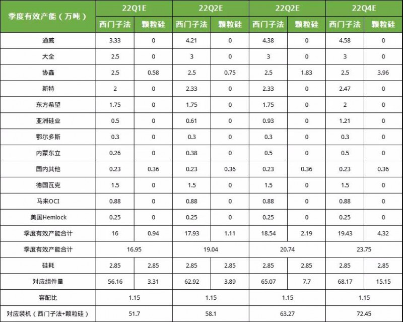 3. 22年顆粒硅潛在市場(chǎng)需求有望達(dá)22萬噸