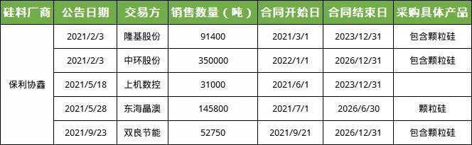 保利協(xié)鑫與晶澳簽訂顆粒硅采購(gòu)長(zhǎng)單:晶澳將于未來5年向協(xié)鑫采購(gòu)總計(jì)14.58萬噸顆粒硅,顆粒硅進(jìn)一步獲得下游客戶的認(rèn)可。
