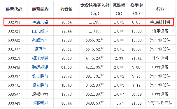 11月29日盤后,同花順iFinD發(fā)布龍虎榜信息,太陽能電池組件制造商橫店東磁(SZ:002056)當(dāng)日凈買入額達(dá)到1.15億,位居第一。其中深股通凈買入5257萬,機(jī)構(gòu)凈買入1758萬。