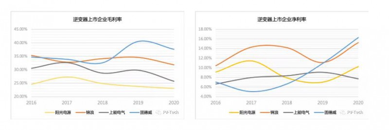 此外,從近幾年國(guó)內(nèi)主要逆變器廠商的毛利率來(lái)看,主營(yíng)小功率(組串式、微型)逆變器的錦浪、固德威,其毛利率相對(duì)要高于以大功率(集中式)逆變器為主的陽(yáng)光電源、上能電氣。因此,若未來(lái)小功率逆變器出貨比例持續(xù)提升,或有助于帶動(dòng)深耕戶用市場(chǎng)的逆變器企業(yè)綜合盈利能力進(jìn)一步提升。