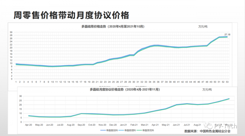 另一方面,其他超百吉瓦產(chǎn)能的中小企業(yè)和新進(jìn)入的硅片搶購剩余不到10%的硅料,每月推高交易價(jià)格。