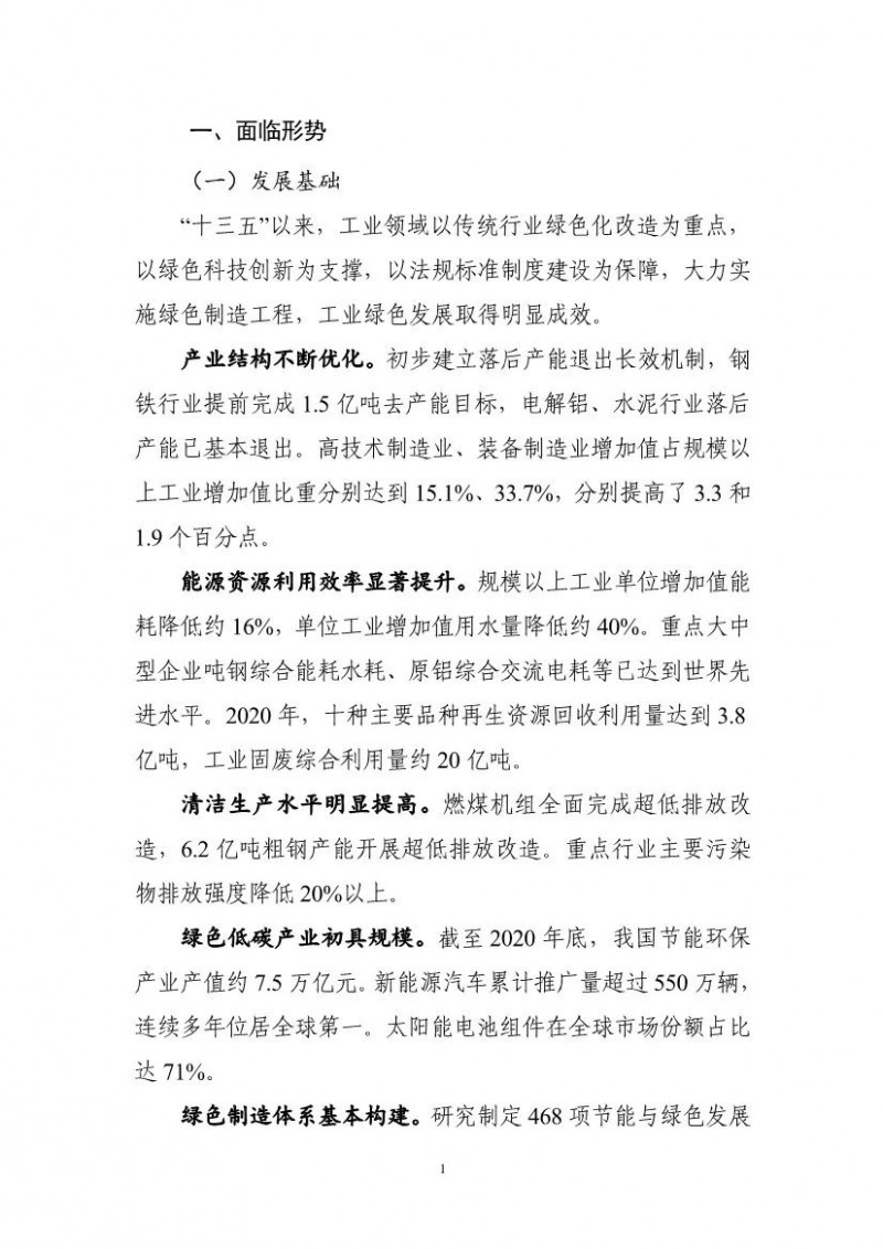 工業(yè)和信息化部關于印發(fā)《“十四五”工業(yè)綠色發(fā)展規(guī)劃》的通知