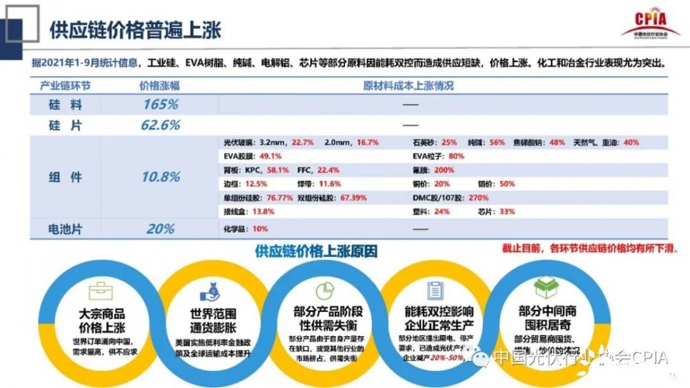 據(jù)此,王勃華表示,供應(yīng)鏈價(jià)格的上漲尤其會(huì)影響到光伏裝機(jī)的預(yù)測(cè)。他說:“今年光伏裝機(jī)量預(yù)測(cè)要下調(diào),由原來的55-65GW下調(diào)至45-55GW,發(fā)展不及預(yù)期的原因?yàn)橹笜?biāo)下發(fā)滯后、價(jià)格上漲等所致。但是2022年光伏裝機(jī)在國(guó)內(nèi)巨大的光伏發(fā)電項(xiàng)目?jī)?chǔ)備量推動(dòng)下,可能會(huì)增至75GW以上。”