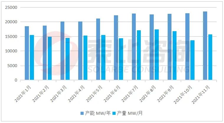 2021年底中國硅料總產(chǎn)能78萬噸,硅料總產(chǎn)量達(dá)48.78萬噸,預(yù)計(jì)2022年底硅料總產(chǎn)能達(dá)115萬噸,但2022年H1硅料仍持相對緊缺的狀態(tài),下半年或有緩解。