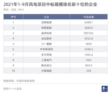 圖2:2021年1-9月風(fēng)電項目中標統(tǒng)計情況