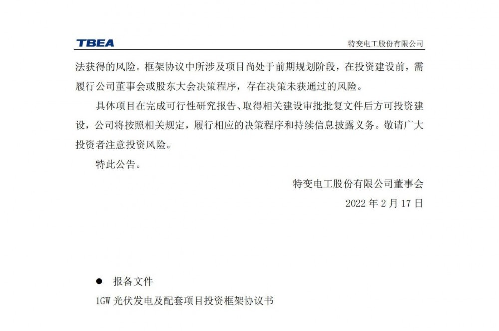 2022 年 2 月 16 日,特變電工發(fā)布公告稱: