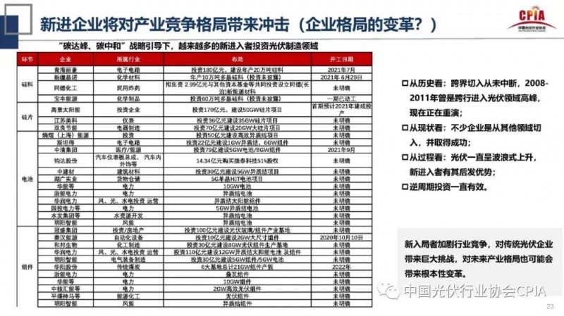 這些企業(yè)的進(jìn)入,無(wú)疑加劇了光伏行業(yè)競(jìng)爭(zhēng),給傳統(tǒng)光伏企業(yè)帶來(lái)了巨大挑戰(zhàn),也有可能會(huì)給未來(lái)的光伏產(chǎn)業(yè)格局帶來(lái)根本性變革。