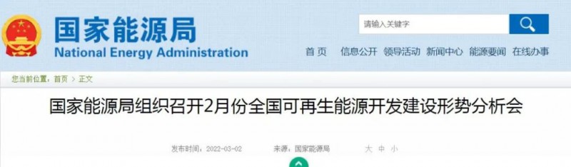 會(huì)議圍繞研究促進(jìn)2022年風(fēng)電光伏開發(fā)建設(shè),聽取了上次月度形勢(shì)分析會(huì)意見建議落實(shí)情況及全國可再生能源電力發(fā)展情況匯報(bào),與會(huì)單位反映了大型風(fēng)電光伏基地項(xiàng)目并網(wǎng)和送出工程、林草地使用、項(xiàng)目核準(zhǔn)、選址調(diào)整、項(xiàng)目整合等問題,并提出了相關(guān)建議。2022年風(fēng)電光伏發(fā)展開局良好,1月份全國風(fēng)電光伏新增裝機(jī)超過1200萬千瓦,風(fēng)光電消納利用率保持在較高水平。