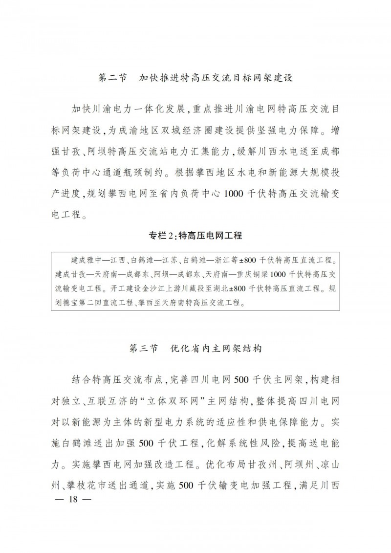 特高壓建設方面:“十四五”將建成雅礱江中游至江西、白鶴灘至江蘇、白鶴灘至浙江等±800千伏特高壓直流工程,開工建設金沙江上游至湖北多能互補外送特高壓直流工程。研究規(guī)劃與西北電網(wǎng)聯(lián)接第二通道,研究布局藏東南和雅魯藏布江下游水電入川接續(xù)轉(zhuǎn)送特高壓工程。重點推進川渝電網(wǎng)特高壓交流目標網(wǎng)架建設,為成渝地區(qū)雙城經(jīng)濟圈建設提供堅強電力保障。