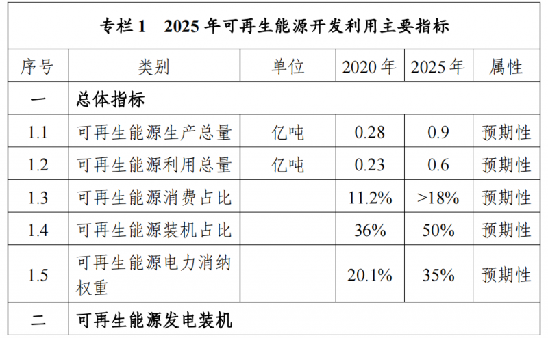 “十四五”時期主要發(fā)展目標(biāo)如下:——可再生能源總量目標(biāo)。2025 年,自治區(qū)可再生能源供給能力顯著提高,可再生能源生產(chǎn)總量超過 9000 萬噸標(biāo)準(zhǔn)煤,可再生能源區(qū)內(nèi)利用量超過 6000 萬噸標(biāo)準(zhǔn)煤,占當(dāng)年一次能源消費(fèi)總量的 18%以上,超過全國平均水平。——可再生能源發(fā)電目標(biāo)。自治區(qū)可再生能源發(fā)電裝機(jī)達(dá)到 1.35 億千瓦以上,其中風(fēng)電 8900 萬千瓦、光伏發(fā)電 4500 萬千瓦,新能源裝機(jī)規(guī)模超過燃煤火電裝機(jī)規(guī)模,新能源發(fā)電量占自治區(qū)總發(fā)電量比重超過 35%。“十四五”期間可再生能源新增裝機(jī) 8000 萬千瓦以上,占全部新增裝機(jī)的比重超過 60%,成為新增裝機(jī)的主力。——可再生能源并網(wǎng)運(yùn)行目標(biāo)。全區(qū)可再生能源在更大 規(guī)模發(fā)展的情況下實(shí)現(xiàn)合理利用,平均利用率保持在 90%以上,可再生能源發(fā)電能力持續(xù)提升并領(lǐng)先全國。