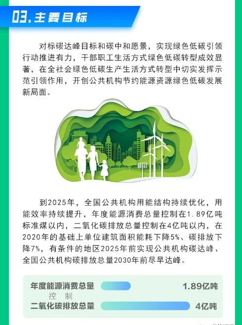 國家機關(guān)事務(wù)管理局、國家發(fā)改委、財政部、生態(tài)環(huán)境部發(fā)布關(guān)于印發(fā)深入開展公共機構(gòu)綠色低碳引領(lǐng)行動、促進碳達峰實施方案的通知。