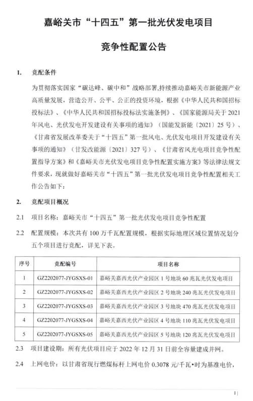 配儲規(guī)模≥20%!甘肅嘉峪關(guān)發(fā)布1GW光伏競爭性配置項目
