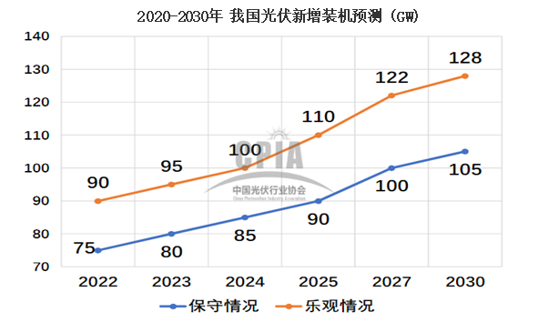 根據(jù)協(xié)會預(yù)測,中國2022年的裝機(jī)量將達(dá)到75~90GW。最晚將在2027年沖破100GW。