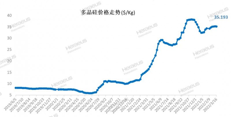 隨著1、2月份裝機(jī)量的大幅增長,下游市場需求持續(xù)走高,多晶硅價格保持高位并略有上漲??紤]到硅料新擴(kuò)產(chǎn)能釋放周期,短期內(nèi)不會對硅料價格有明顯影響。