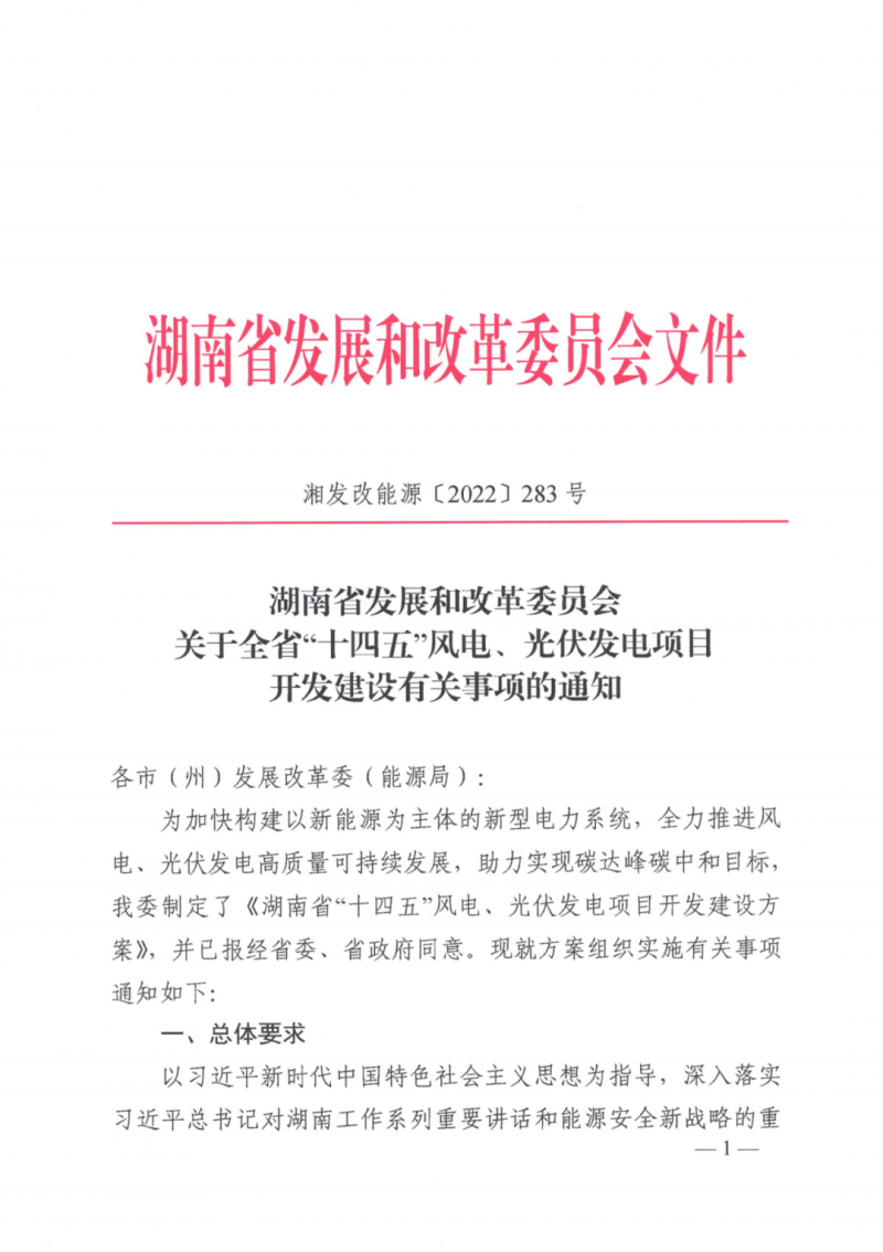 4月14日,湖南發(fā)改委印發(fā)《關(guān)于全省“十四五”風(fēng)電、光伏發(fā)電項目開發(fā)建設(shè)有關(guān)事項的通知》,力爭做到在“十四五”期間具備開發(fā)建設(shè)條件的風(fēng)電、集中式光伏發(fā)電項目應(yīng)開盡開。