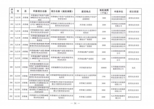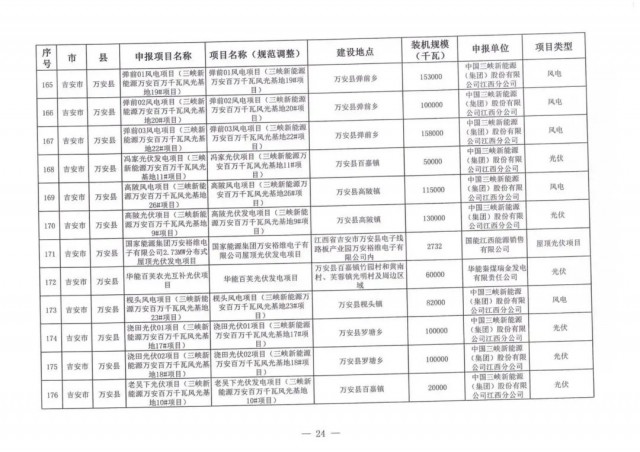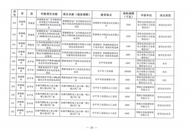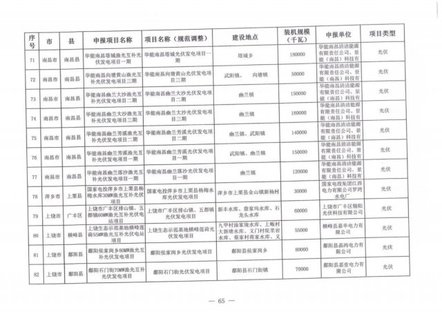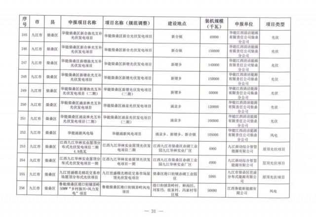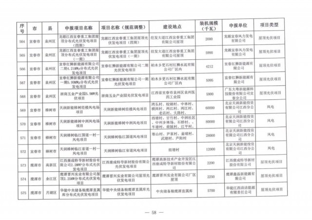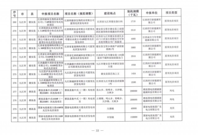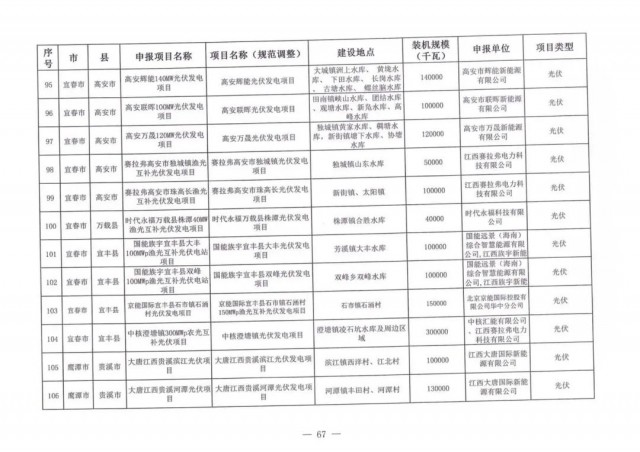 本次江西調(diào)整的納規(guī)風(fēng)光項(xiàng)目總規(guī)模為41.816GW,光伏規(guī)模33.06GW,風(fēng)電規(guī)模為8.754GW,總計(jì)687個(gè)項(xiàng)目。其中,光伏又分為集中式、分布式和水面光伏,規(guī)模分別為23.885GW、0.955GW、8.22GW。
