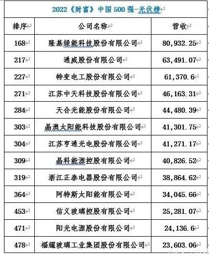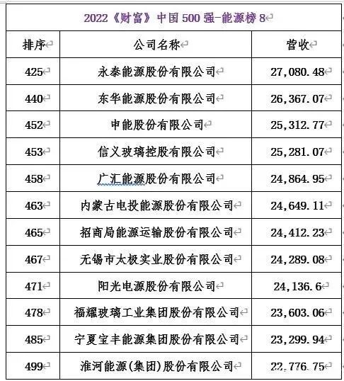 7月12日,2022年《財(cái)富》中國500強(qiáng)排行榜揭曉,有82家能源企業(yè),13家光伏企業(yè)上榜。